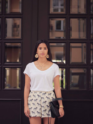 The eyecatcher of this high waisted shorts is definitely the pattern. I want the zebras to get all the attention possible, I combined the shorts with a simple basic shirt and my favourite TOMS. I added a lot of golden accessoires and my perfect outfit for a hot summer day is done. I wish you a great weekend with hopefully perfect weather!